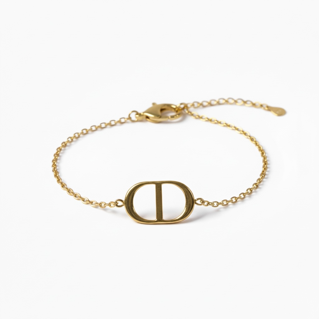 – Bracelet en plaqué or : réglable (16cm avec rallonge de 3cm)