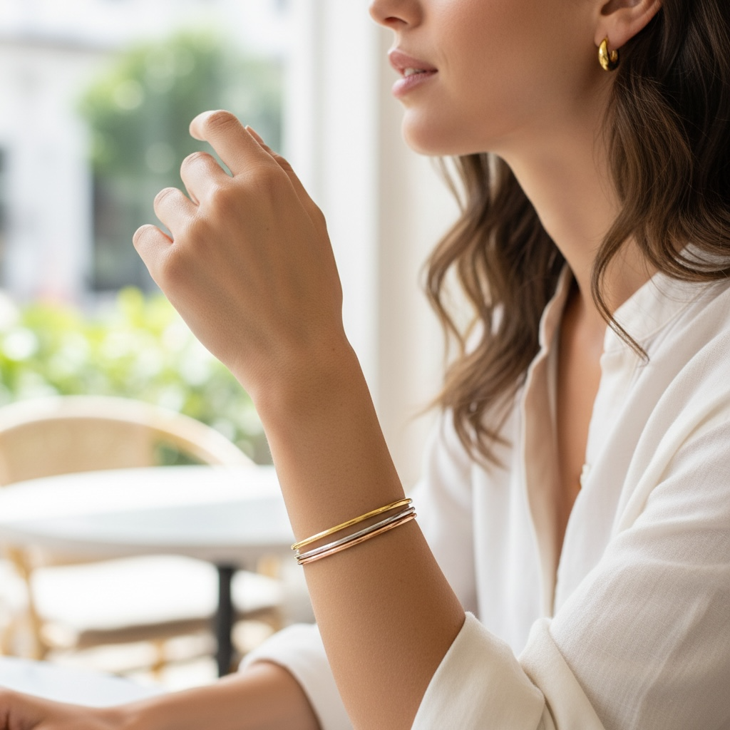 – Joncs (3 couleurs) en plaqué or : (6,5cm de diamètre)