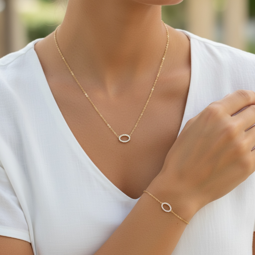 – Collier en plaqué or, orné de strass : réglable (40cm avec rallonge de 5cm)